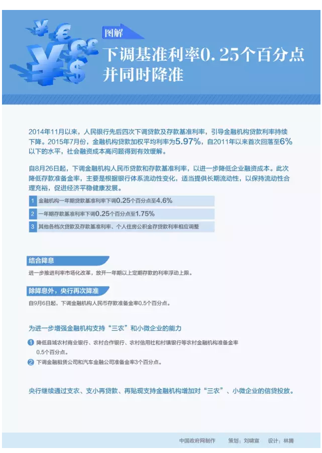8月25日,中國人民銀行公布決定????,下調(diào)金融機(jī)構(gòu)存貸款基準(zhǔn)利率和人民幣存款準(zhǔn)備金率??。這也是繼6月27日央行宣布“定向降準(zhǔn)+降息”舉措之后,又一次降準(zhǔn)???????、降息組合出擊,并且此次降準(zhǔn)是普降與定向相結(jié)合??。