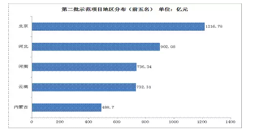 從投資總額上看???????:從示范項(xiàng)目的投資總額來(lái)看,北京市入圍的5個(gè)項(xiàng)目總投資額1216.78億元居首,河北省13個(gè)項(xiàng)目總投資額902.08億元排第二;