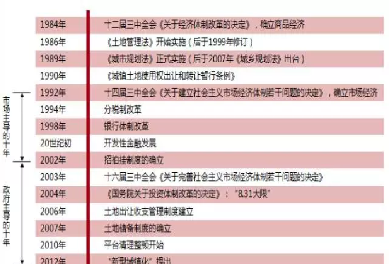 第二個(gè)階段是2002年到2012年??。2002年我國(guó)確立了土地招拍掛制度,一二級(jí)開發(fā)從此分立,各地的投融資平臺(tái)也開始大力發(fā)展,市場(chǎng)化的企業(yè)退出了一級(jí)開發(fā)這個(gè)領(lǐng)域????。政府從主導(dǎo)城市開發(fā)角度出臺(tái)了很多的政策制度???????????,土地一級(jí)開發(fā)工作也逐漸規(guī)范??。這十年定義為政府主導(dǎo)的十年??。
