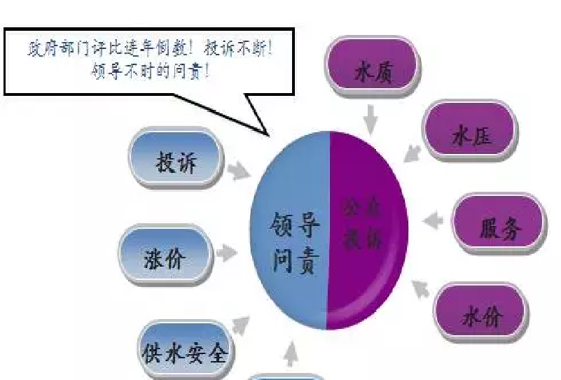 當(dāng)時(shí)這個(gè)監(jiān)管機(jī)構(gòu)是四個(gè)人,這四個(gè)人不光監(jiān)管供水??,還監(jiān)管燃?xì)猓ぷ鲏毫艽???梢钥吹剿麄儊?lái)自于兩方面的壓力,一方面是公眾的壓力,另一方面是領(lǐng)導(dǎo)的壓力。公眾不停的投訴,水質(zhì)??、水壓等投訴??。領(lǐng)導(dǎo)問(wèn)責(zé)的是因?yàn)?,領(lǐng)導(dǎo)經(jīng)常會(huì)接到來(lái)自于民眾的投訴、還有企業(yè)要漲價(jià)、還有供水安全、部門(mén)協(xié)調(diào)等問(wèn)題????。這四個(gè)人工作壓力很大,最后結(jié)果是怎樣?政府部門(mén)評(píng)比年年倒數(shù)?????♀?,領(lǐng)導(dǎo)不時(shí)問(wèn)責(zé)????,在這種情況下住建局找到我們想了解一下這個(gè)企業(yè)和被評(píng)估的監(jiān)管機(jī)構(gòu)做的到底怎么樣?????♀?,這就是項(xiàng)目的背景。