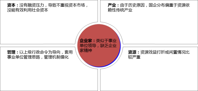 1. 國企領(lǐng)導(dǎo)的企業(yè)家精神不足????。與民營企業(yè)的企業(yè)家通常為創(chuàng)始人不同,國企領(lǐng)導(dǎo)通常由上級委派,創(chuàng)業(yè)精神與視企業(yè)如生命的民營企業(yè)家相比創(chuàng)業(yè)精神稍弱;