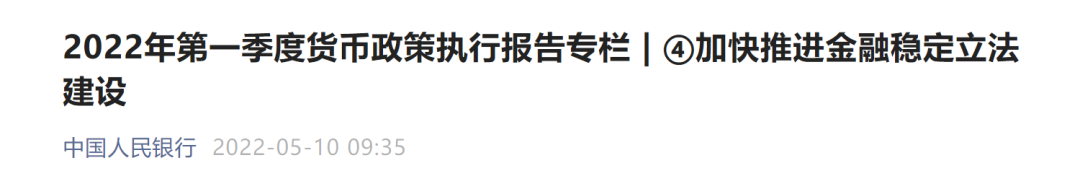 (5月10日,中國人民銀行公眾號:下一步,人民銀行將會同有關部門充分吸收社會各界反饋的意見建議,進一步修改完善《金融穩(wěn)定法》草案,按照立法程序配合立法機關高質量推進后續(xù)工作,推動《金融穩(wěn)定法》早日出臺??。)