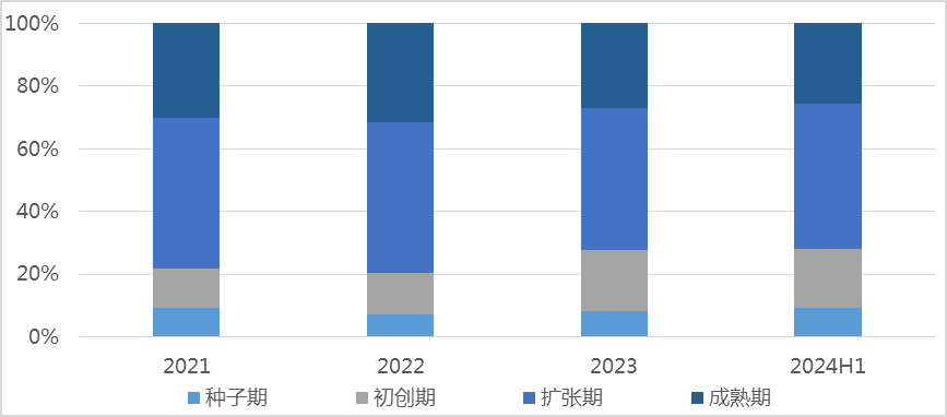 根據(jù)清科研究??,2024年上半年,創(chuàng)業(yè)投資基金占全市場(chǎng)新募集基金規(guī)模的35%,相比2021年提升5個(gè)百分點(diǎn);創(chuàng)業(yè)期(種子期、初創(chuàng)期)投資項(xiàng)目占全市場(chǎng)新增投資規(guī)模的28%,相比2021年提升6個(gè)百分點(diǎn)???????。同時(shí)更多地方政府在引導(dǎo)基金管理辦法修訂中明確提出重點(diǎn)支持種子類、天使類和創(chuàng)投類基金?????,并優(yōu)化相關(guān)管理制度。