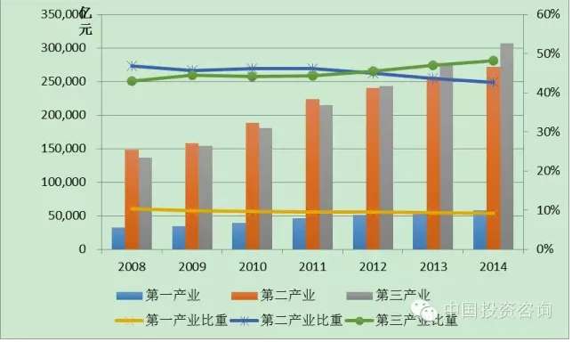 圖1 2008-2014年三大產(chǎn)業(yè)占比情況