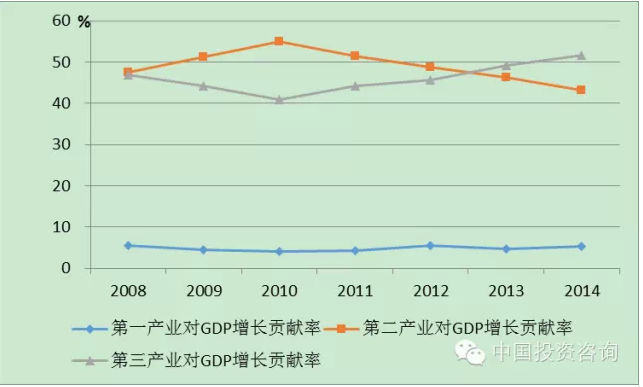 圖2 2008-2014年三大產(chǎn)業(yè)對GDP貢獻率變化情況