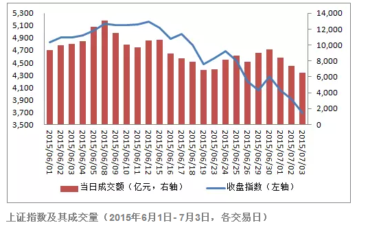 進(jìn)入2015年以來(lái),在政府支持和輿論引導(dǎo)之下(“4000點(diǎn)是牛市新起點(diǎn)”),股市成為“國(guó)家牛”,延繼2014年的上漲態(tài)勢(shì),一路狂飆,直至6月12日的5178點(diǎn)????。但是??,自此以后則一路下滑。由充裕流動(dòng)性催生??????????、改革預(yù)期和新興互聯(lián)網(wǎng)經(jīng)濟(jì)等概念推動(dòng)的新一輪中國(guó)牛市遭受重挫。在股市一路高歌猛進(jìn)的過(guò)程中被掩蓋和忽視的風(fēng)險(xiǎn)逐漸暴露,各路資金奪路而逃,終成大逃亡?????♂?。