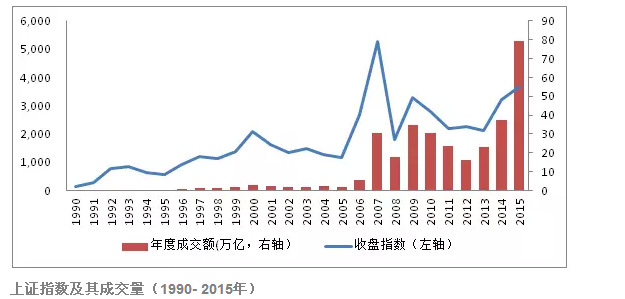 在經(jīng)歷了漫長(zhǎng)的徘徊,自2014年7月的2000點(diǎn)開(kāi)始,以銀行等大盤(pán)藍(lán)籌的低估值修復(fù)為先導(dǎo),上證指數(shù)不斷上漲。2014年11月下旬,央行降息??、投資者信心復(fù)蘇???????、場(chǎng)外資金進(jìn)場(chǎng)等多方面因素作用?????♀???,以券商為代表的金融板塊領(lǐng)漲大盤(pán)。兩市成交量指數(shù)級(jí)放大???????,日成交金額數(shù)次突破萬(wàn)億元?????♀?。滬指從年初1月2日收盤(pán)時(shí)的2109點(diǎn)上漲至12月30日收盤(pán)時(shí)的3165點(diǎn),全年漲幅50.07%?????♀?。